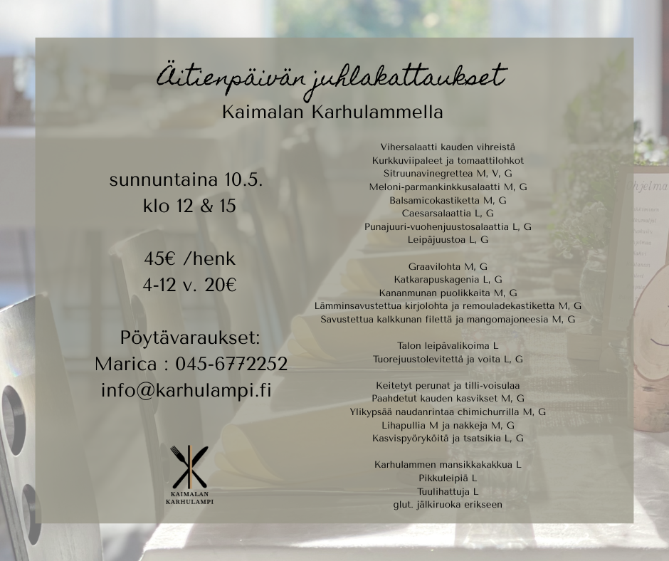 Meillä järjestät elämän varrella tapahtuvat juhlat helposti. Järjestämme häät, perhetapahtumat, kokoukset ym. juuri Sinun toiveidesi mukaan.